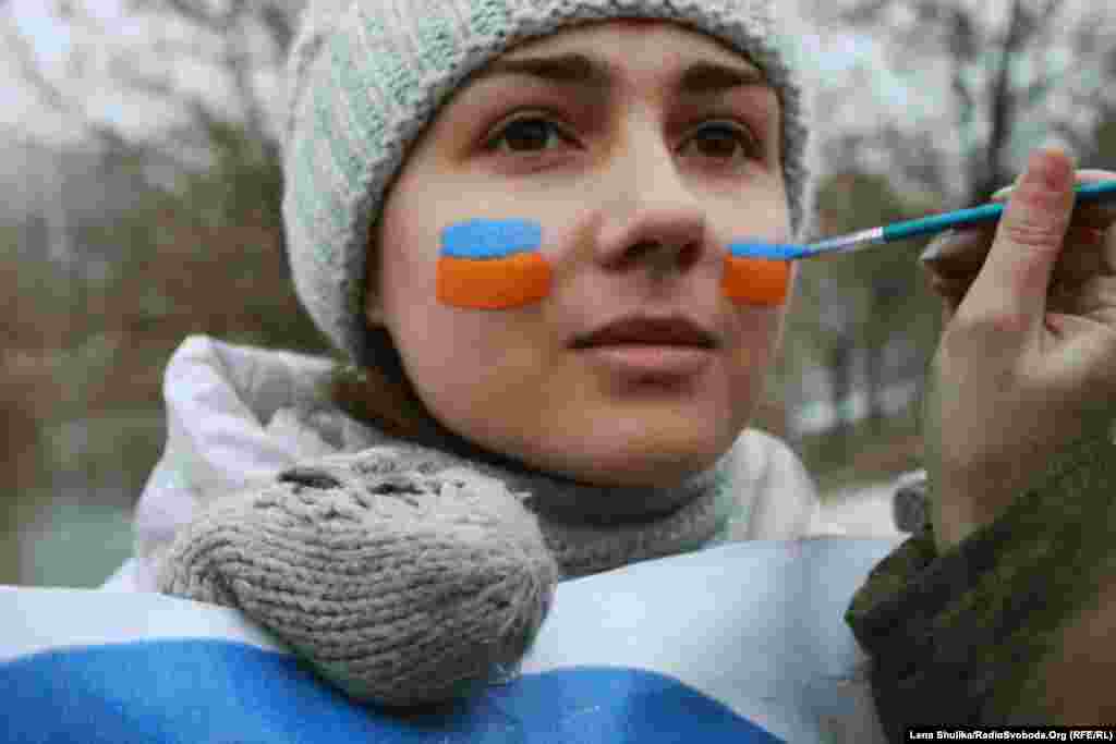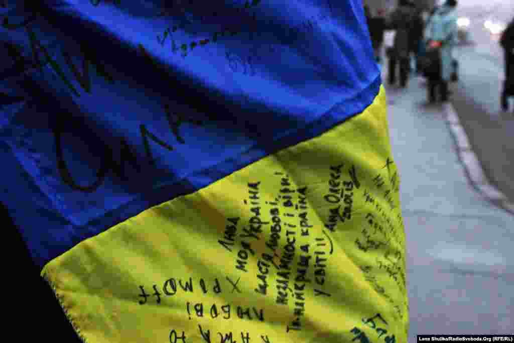 Учасники акції рухалися колоною по мосту Патона, та вигукували гасло: «Одна, єдина – соборна Україна». Також під час акції хвилиною мовчання та свічками вшанували пам’ять першої жертви на Майданіу– Сергія Нігояна.