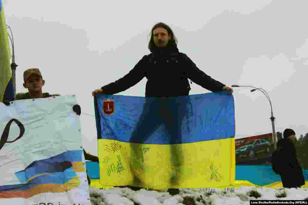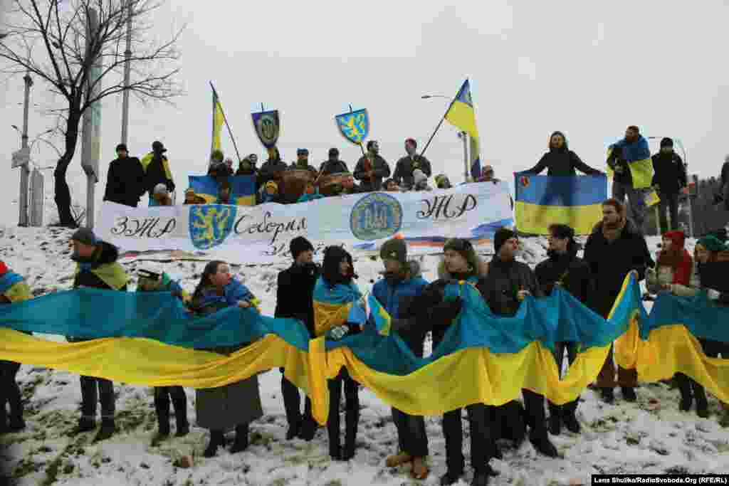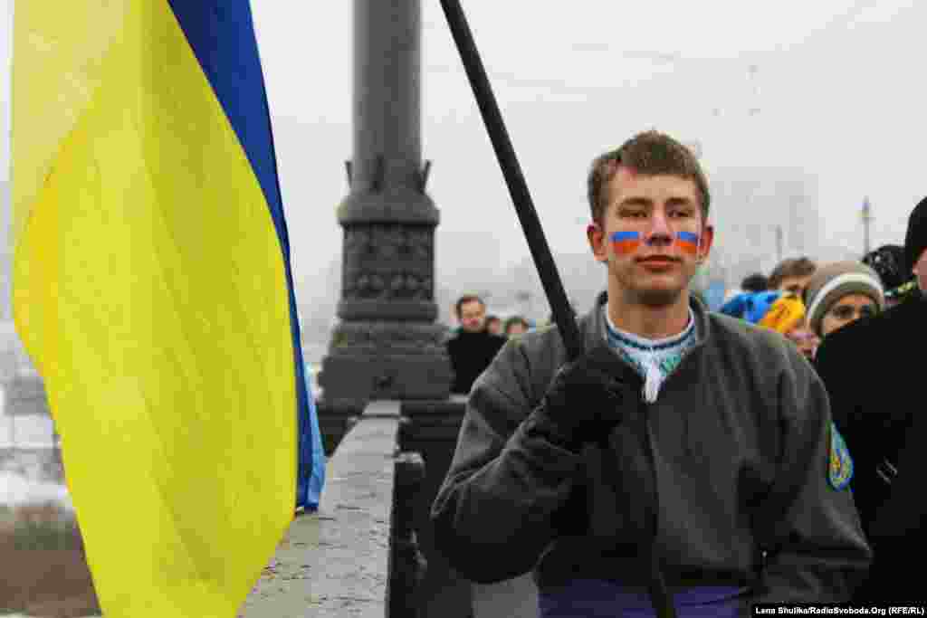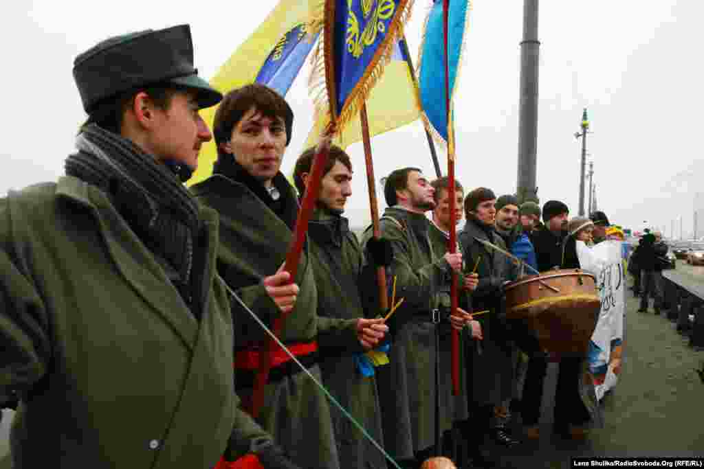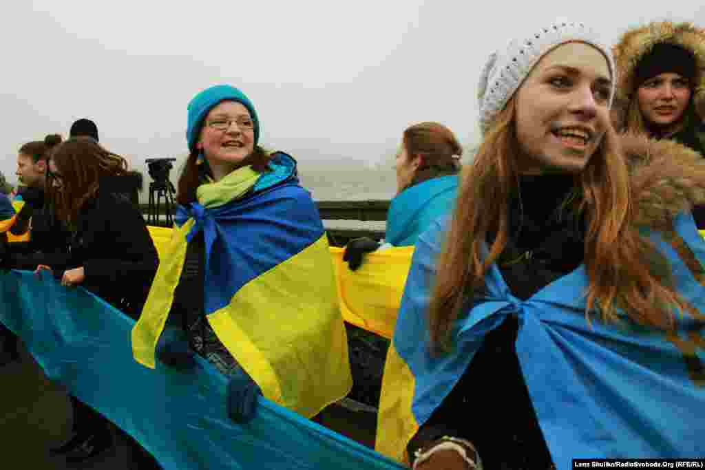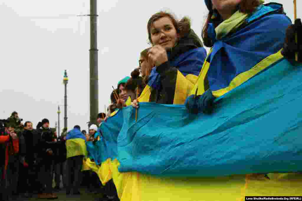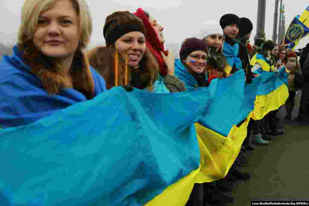 Близько двохсот киян з’єднали береги Дніпра живим ланцюгом в честь Дня соборності України.