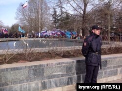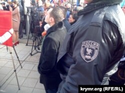 Перед присутніми під будівлею Держради виступили представники нинішньої влади – глава Криму Сергій Аксьонов, спікер Володимир Константинов і повноважний представник президента Російської Федерації в Криму Олег Белавенцев.