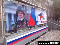 На честь річниці анексії Криму в Сімферополі розгорнули величезний російський прапор