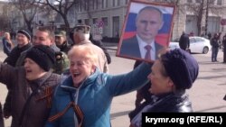 – Для нас для всіх сьогодні велике свято – День Перемоги, можна сказати. Сьогодні річниця як ми повернулися в рідну гавань в Росію-матінку, – ділиться думками з кореспондентом видання Крим.Реалії одна з присутніх.