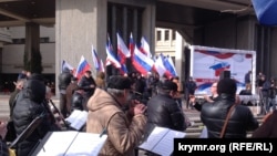 Сімферополь – У Криму з помпезністю почали відзначати річницю від дня «приєднання» півострова до Росії. У містах і районах проходять святкові концерти та збори, у школах – уроки, присвячені подіям «Кримської весни». За тим, як пройшов перший день свята в кримській столиці, спостерігав кореспондент Крим.Реалії.