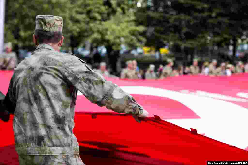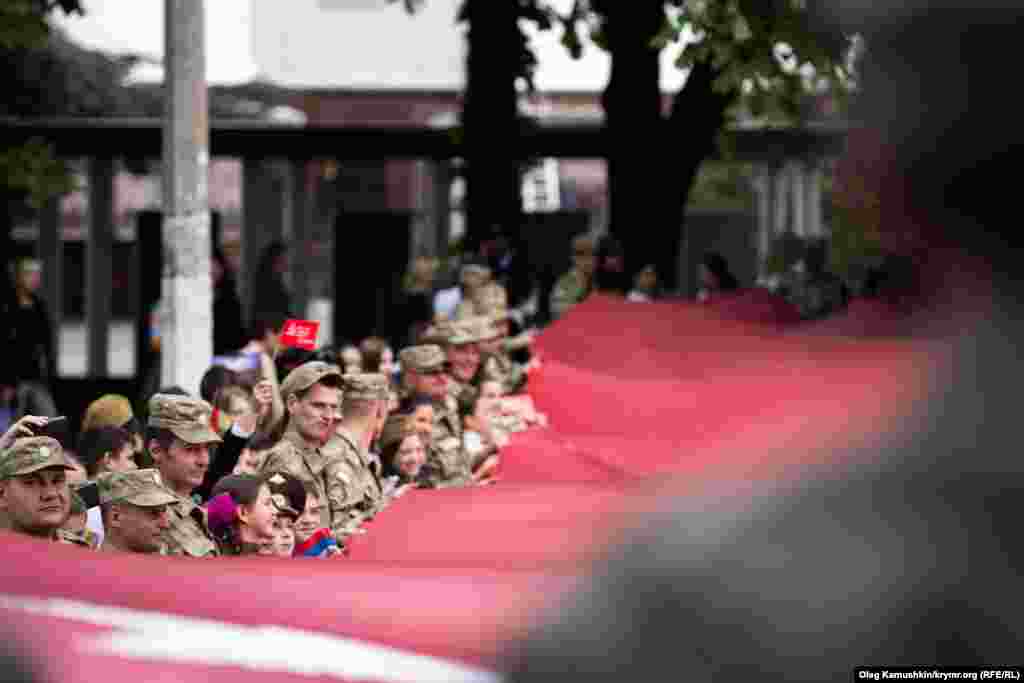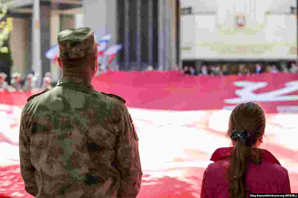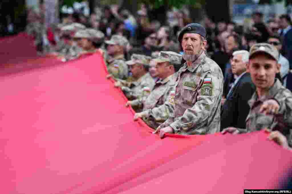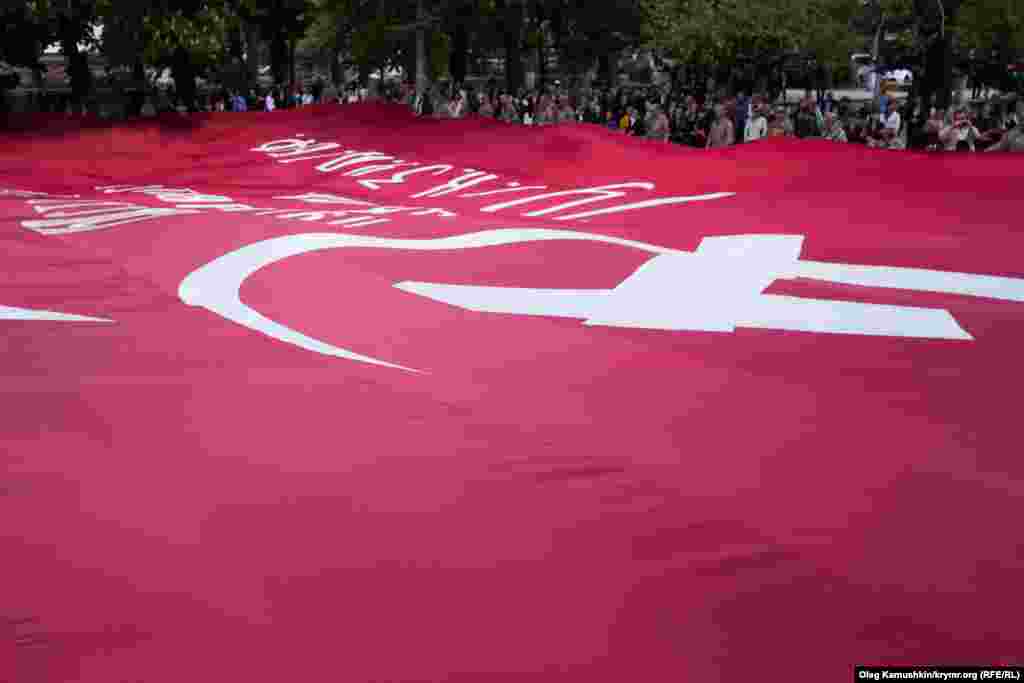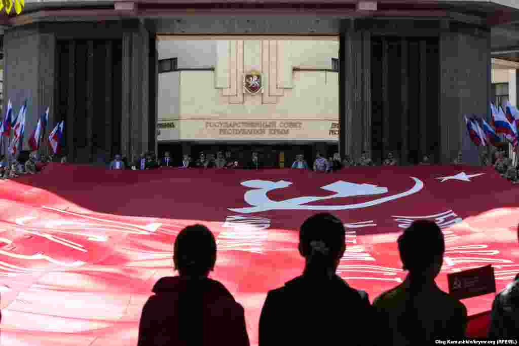 У Сімферополі перед будівлею Держради Криму розгорнули копію Прапора Перемоги площею 700 квадратних метрів.