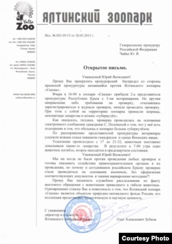Крім того, Зубков звернувся до Генерального прокурора Росії Юрія Чайки з проханням призначити службове розслідування за фактом жорстокого поводження з тваринами в ялтинському зоопарку. «Ніхто не проти перевірок. Але чому в Криму вони відбуваються з таким варварством з боку правоохоронних органів? На підставі якихось листів, анонімок, без повідомлень і розглядів, як це заведено в нормальних державах», – додав Зубков.