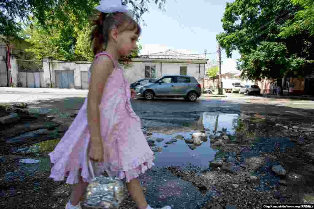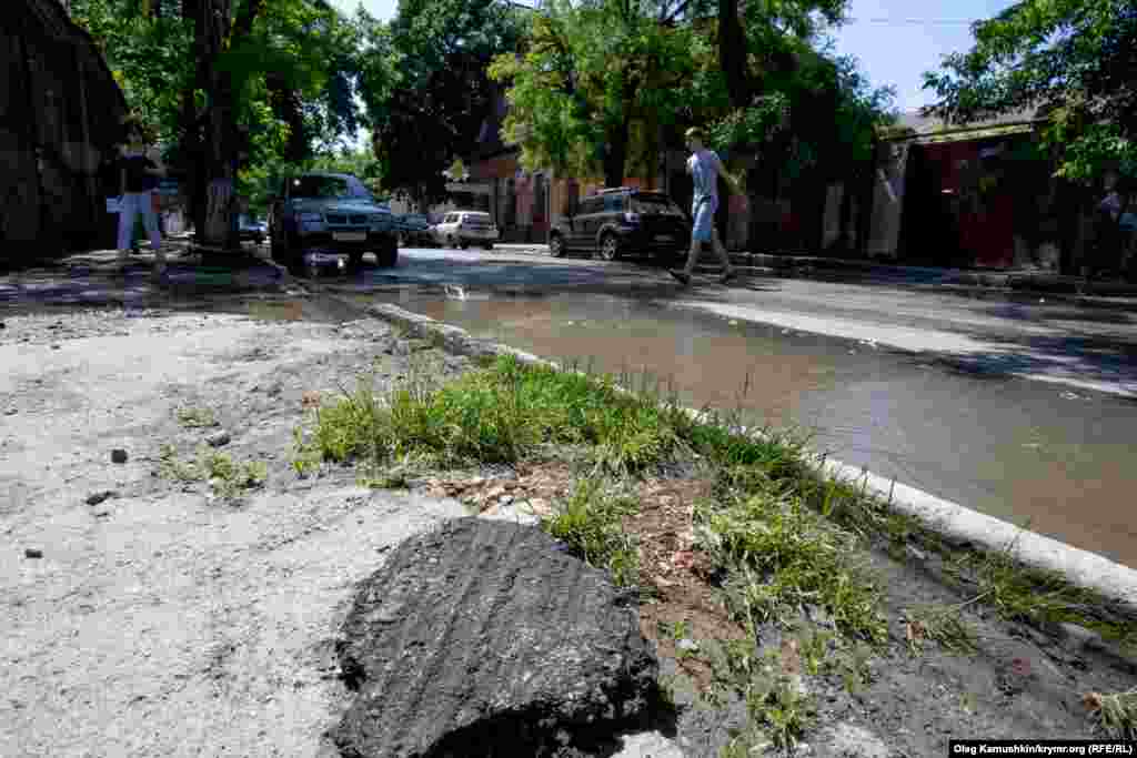 Столицю Криму 9 червня затопило сильною зливою. Дороги в центрі міста перетворилися на річки. У попередні місяці нова кримська влада посилено ремонтувала дороги. Після дощу одна з вулиць у центрі Сімферополя наповнилася шматками асфальту, які потоки води вирвали з дорожнього полотна.