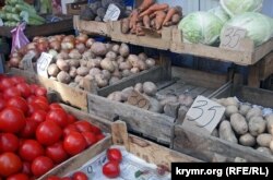 Серед безлічі фур знаходимо вантажівку з сумськими номерами, в якій лежить картопля. Водій зізнається, що встиг заїхати до Криму ще до блокади. Оптова ціна картоплі трохи вища за середню – 25 рублів за кілограм, проте покупці беруть її охоче.