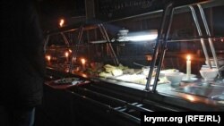 А це окремий сюжет. Те, що в ресторанах Сімферополя мимоволі вечеряють при свічках, екзотичним не виглядає, романтика, як-не-як, хоч і вимушена. А ось містично освітлений фаст-фуд – це вже якийсь сюрреалізм. Причому все інше виглядає, як і годиться в урбаністичному закладі. Їдальня «У мами».