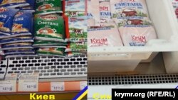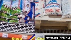 У Криму українське благополучно імпортозамінене, навіть іноді трапляється «Олейна», яка має штрихкод, що починається на 46