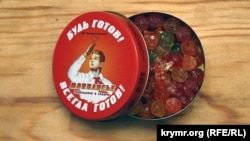Монпансьє «Будь готовий! Завжди готовий!». Тут прекрасно все – навіть самі льодяники. Дійсно, смачні і яскраві, сам спробував. І недорого, 35 рублів (десять з гаком гривень).