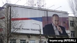 Цю агітку з президентом, який, очевидно, почувається жахливо незручно, добре знають всі кримчани. Тільки дорогою від Сімферополя до Севастополя (менше 80 кілометрів) подібних білбордів чи то шістнадцять, чи то сімнадцять штук.