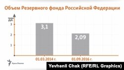 Російські резервні фонди, які створювалися на чорний день, тануть щогодинно. Якщо на 1 березня 2014 року в Резервному фонді було 3,1 трильйона рублів (трохи менше 100 мільярдів доларів), то на 1 вересня 2016 року, за інформацією російського Мінфіну, залишилося лише 2,09 трильйона рублів (32,2 мільярда доларів).