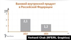 На тлі економічних проблем ВВП у 2015 році скоротився майже в 2 рази в доларовому еквіваленті в порівнянні з доанексійним періодом: 1,2 мільярда проти 2,1 мільярда доларів США.