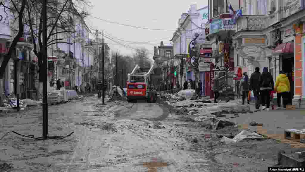 У Сімферополі четвертий місяць ремонтують центральні вулиці міста. Ремонт розпочали ще восени. Як відбуваються ремонтні роботи, дивіться у фоторепортажі Крим.Реалії.