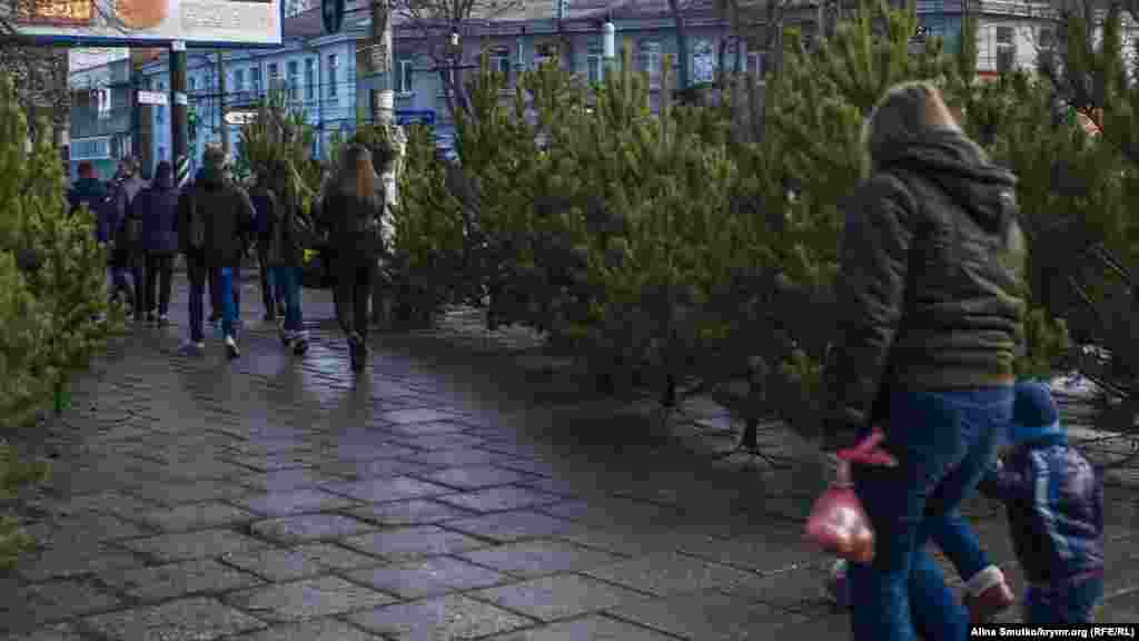 До Нового року залишилося менше двох тижнів. У столиці Криму Сімферополі вже встановили святкову ялинку, яскравими ліхтариками прикрасили магазини і вулиці. На ялинкових базарах продають різноманітні новорічні дерева. На святкових ярмарках великий асортимент святкових сувенірів, прикрас і солодощів.