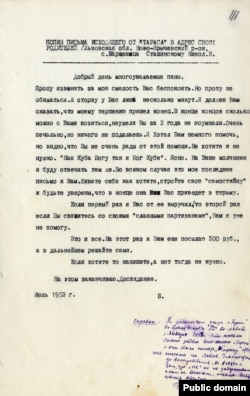 МДБ відстежує й особисту переписку «Тараса». Так із листів Богдана Сташинського до батьків видно, що він переконує їх не підтримувати «самостійну» й підпілля. Інакше, як пише Сташинський, він уже вдруге не зможе врятувати рідних від «тюрми».