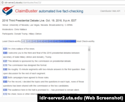 Або ж ресурс ClaimBuster, який здатен у прямому ефірі розшифровувати виступи політиків і позначати фрази, які варто перевірити.