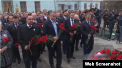 А це вже візит кримських «чиновників» до окупованого Донецька. На святкування триріччя «ДНР» приїхала ціла делегація. На чолі – депутат Держдуми Російської Федерації Андрій Козенко. «Дякую вам за дійсно гідне свято, щире свято», – сказав він під час виступу.