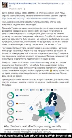 За її словами, два газогони, що діють в обхід України ,– «Північний потік-1» та «Опал» – завантажені лише наполовину. Це свідчить про те, що продовження «Північного потоку» економічно не доцільне і має на меті лише завдати шкоду українській економіці й економіці країн Східної Європи. «Цивілізований світ розуміє, що це абсолютно заполітизований проект Росії, який має на меті позбавити Україну транзитного потенціалу. А також мати геополітичний інструмент впливу на Європу в тому числі. Тому санкції, які запропонували Сенат і Палата представників США, є логічними, і вони дадуть у перспективі можливість зупинити будівництво цього політично мотивованого проекту «Газпрому», – наголошує Наталія Кацер-Бучковська.