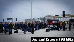 Найбільше літаків у Сімферополі з Москви та Санкт-Петербурга, а на табло реєстрації видно, що літають сюди тільки російські авіакомпанії. Міжнародні рейси відсутні взагалі.