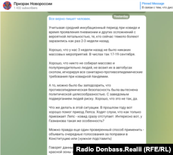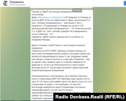 Так званий «Минздрав ДНР» 9 жовтня оприлюднив повідомлення про більш ніж 550 випадків захворення на COVID-19 на території ОРДЛО. Кількість померлих там оцінюють у 82 особи.