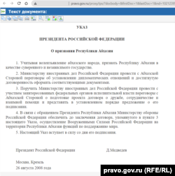 Так сталося у серпні 2008 року, коли тодішній Президент Росії Медведєв своїм указом визнав Абхазію та Південну Осетію як держави. Відбулося це відразу після російсько-грузинської війни.