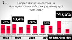 - 21 квітня 2019 року у другому турі президентських виборів Володимир Зеленський майже утричі випередив Петра Порошенка.