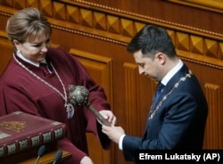 Одна з них – голова Конституційного суду Наталія Шаптала (вона приймала присягу у Зеленського та вручала йому символи президентської влади), інша – голова ЦВК Тетяна Сліпачук (вона офіційно оголошувала результат виборів та вручала Зеленському посвідчення президента).
