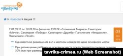 Однак на сайті «Сонячної Таврики» до кінця вересня оголошені знижки на розміщення з дітьми. Серед здравниць, у яких діє акція, зазначені дві, в яких поселили дітей із Армянська ‒ це євпаторійські санаторії «Дружба» та «Мрія». Тобто на момент приїзду постояльців із північного Криму вони не могли бути закриті після курортного сезону, оскільки досі чекають на туристів.