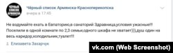 «Табір імені Гагаріна, Євпаторія! Тут сумку страшно на підлогу покласти, не кажучи вже про дитину, якій 1,9 року! Харчування розраховане на дітей від 7 до 16 років! Напрошується питання: що тут робити дітям нашого віку?! Ми поїхали від хімії, а приїхали в номери з тарганами, пилом, брудом, сміттям, запльованими стінами, не кажучи вже про постільну білизну, стан меблів і кімнат у цілому! Невже ми заслуговуємо такого ставлення до себе!» ‒ пишуть жителі Армянська в соцмережі «Вконтакте».