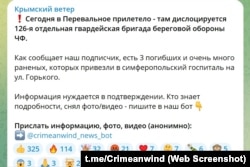 Телеграм-канал «Крымский ветер» повідомив про «приліт» у Перевальному, а також із посиланням на джерела повідомив про трьох загиблих та сімох поранених, яких «привезли до сімферопольського шпиталю на вул. Горького».