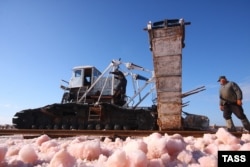 У радянські часи тут працював цілий промисловий комплекс. Сільпром був підрозділом сакського хімзаводу, видобуток відбувався у десяти басейнах. Наприкінці вісімдесятих його скоротили, тепер тут працює приватне підприємство «Галіт». У обнесені парканом ділянки взимку заливають морську воду ‒ влітку рідина випаровується, а сіль залишається. Рожевий колір ‒ це бета-каротин, яким сіль насичується від водоростей під назвою Dunaliella Sallina.