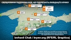 «. Це означає, що більше не буде перспективи та можливості використовувати ці свердловини в майбутньому, зокрема й для видобутку ґрунтових вод, які там могли б бути. Якщо це робиться в межах проєктної документації, то підземним джерелам це не загрожує. Це, навпаки, убезпечить від забруднення ті ресурси, які там, можливо, залишилися», ‒ пояснив він Крим.Реалії.