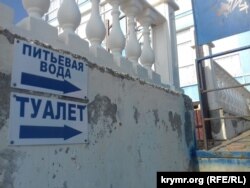 Туалету на пляжі немає. Шукати його відпочивальникам пропонують за вказівником, розміщеним біля входу. Але у напрямку, куди вказує стрілка, туалету немає.