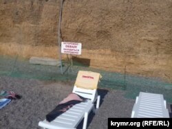 Про присутність рятувальника тут нагадує футболка з відповідним написом, одягнута на спинку шезлонга. Поруч ‒ попередження про можливий обвал ґрунту.