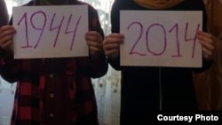 Кримські татари фотографуються з плакатами з нагадуванням про трагедію 1944 року і репресії сьогодні. Вони діляться фотографіями в соціальних мережах.