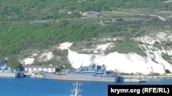 Біля причалів у Сухарній бухті, яка є частиною великої Севастопольської бухти, стоять два великі десантні кораблі Чорноморського флоту Росії. Один із цих БДК має зовнішні ознаки пошкодження, повідомляє кореспондент Крим.Реалії.