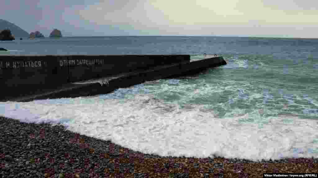 Завершальні дні останнього місяця зими в будь-якому прибережному селищі Криму нагадують смутну картину. Порожні вулиці, безлюдна набережна і пляжі. Саме таким є селище Гурзуф в цю пору роки. Ще одна особливість зимових місяців – сильні шторми. Днями стало відомо, що розгул стихії зруйнував сходи на одному з пляжів Гурзуфа. Ще два, за словами російської влади, повністю змило.