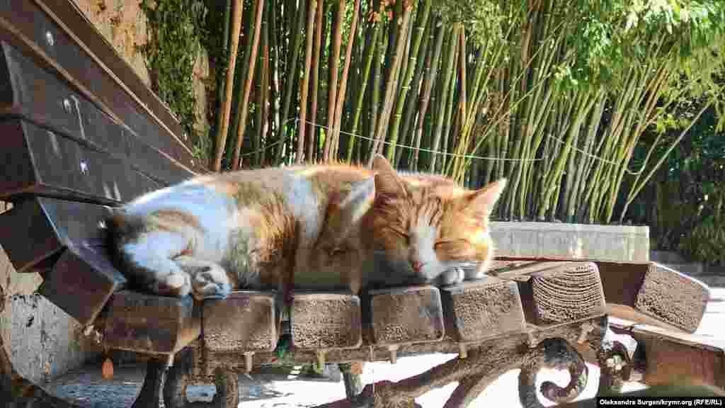 Кіт у Нікітському ботанічному саду на тлі бамбукового гаю | Кримське фото дня