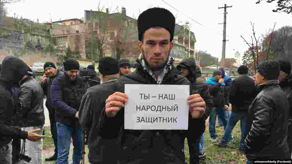 Також біля будівлі суду триває флешмоб на підтримку Еміля Курбедінова