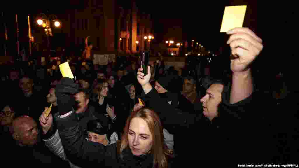 У Києві біля Офісу президента протестують проти розведення сил у зоні проведення ООС на Донбасі. Ініціатива провести акцію «Ні кроку назад!» виникла спонтанно. Організатори обіцяють активізувати свої дії і збиратись на масові заходи, щоб донести до влади, що велика частина українських громадян проти здачі українських інтересів. Під час акції було зачитано звернення до президента з вимогою припинити розведення військ. 29 жовтня штаб української воєнної Операції об’єднаних сил повідомив, що о 12:00 почався процес розведення сил і засобів у районі Золотого-4 на Луганщині.