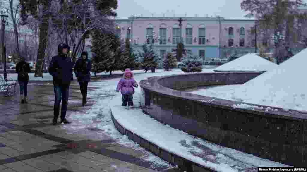 У перші два тижні 2019 року сніг у Сімферополі випадав лише раз. Напередодні синоптики обіцяли жителям кримської столиці справжню зиму, і вже вдень 16 січня їхні прогнози збулися. Сімферополь дочекався своєї порції снігу.