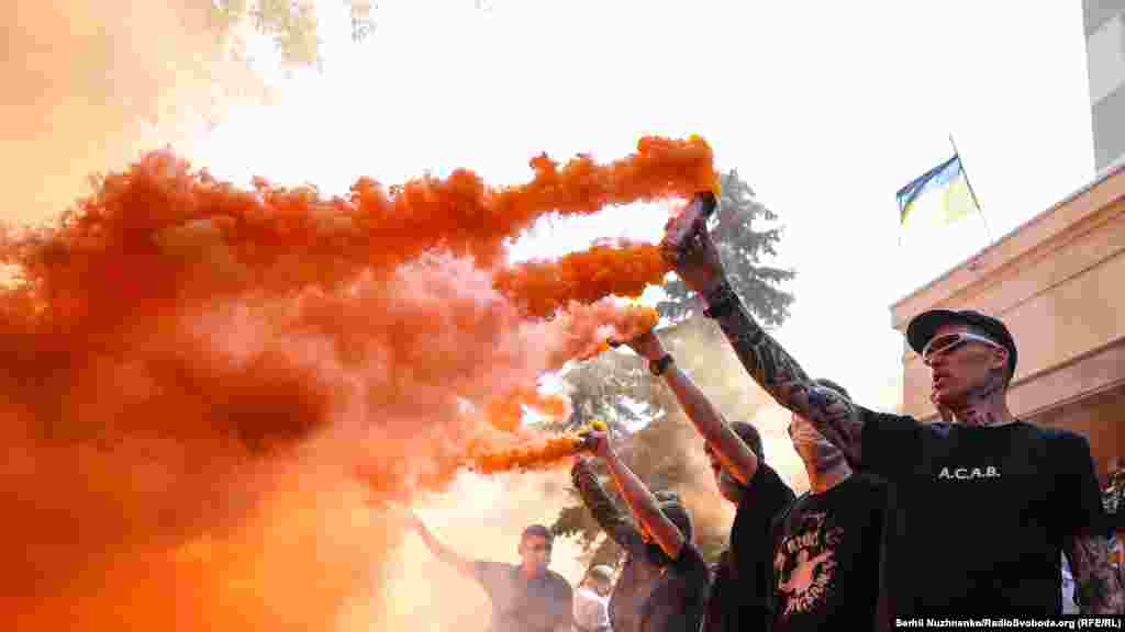 Напередодні Служба безпеки України вручила йому підозру за двома статтями Кримінального кодексу: «умисне протиправне заподіяння смерті іншій людині» та «носіння холодної зброї без передбаченого законом дозволу». Стерненко заявив, що вважає вручення йому підозри грубим порушенням норм Європейської конвенції про захист прав людини та Конституції України. В СБУ наголосили, що «повідомлення про підозру у вчиненні злочину є вимогою закону, який діє незалежно від інформаційних кампаній і політичних переконань тих, хто його порушив».