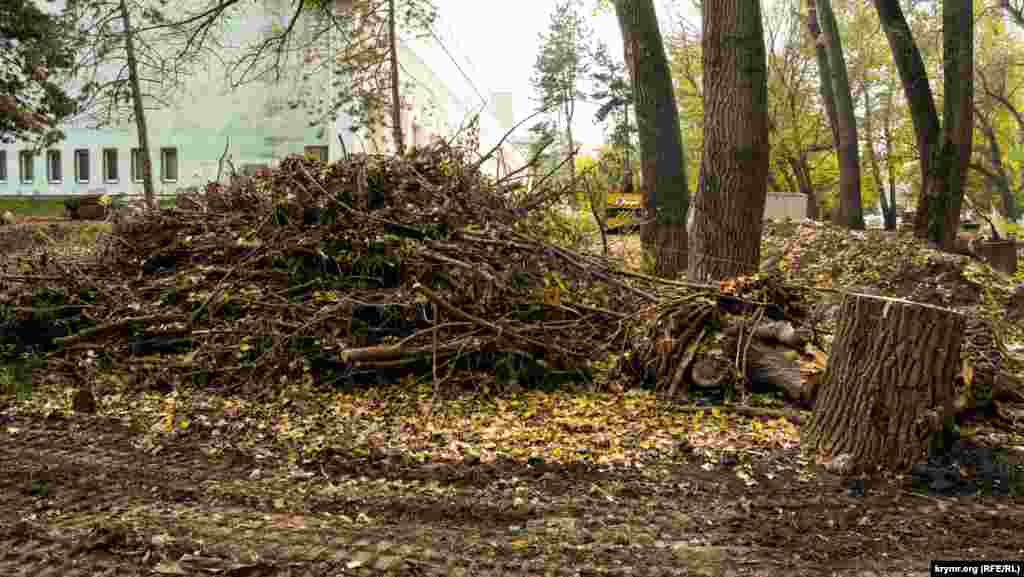 Кореспондент Крим.Реалії зафіксував на фото, як зникає гай біля сімферопольського Палацу культури профспілок.