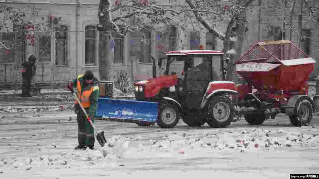 Як повідомляє російський уряд міста, в очищенні вулиць від снігу задіяно 25 одиниць техніки. Працює 283 осіб у дві зміни. В першу чергу підсипаються сходи, тротуари.