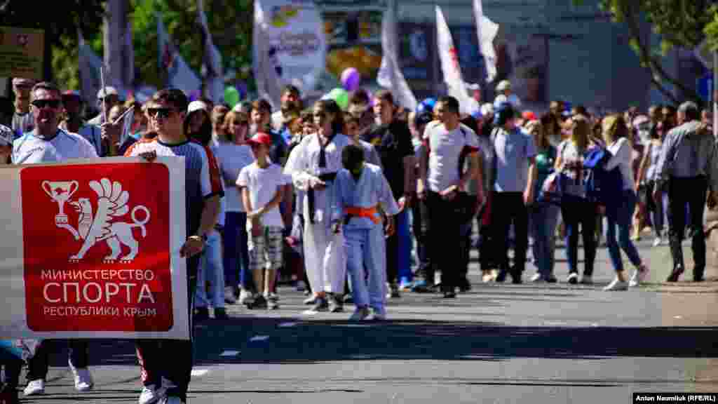 У Сімферополі відбулася першотравнева хода, в якій взяли участь понад 25 тисяч чоловік. Перше травня, або День солідарності трудящих, в Росії й анексованому нею Криму відзначається як День весни і праці.