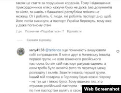 «Мене зі шкільних років агітували отримувати «паспорт ДНР», а після того, як стали видавати російські – то й за російський. Приходили в школі, розповідали про «СНИЛС», який дає паспорт РФ, і так далі. Тих, хто відкрито тоді в школі їм відповідав, що не хоче отримувати, відводили до директора і де проводили бесіду, – розповів донеччанин, якому вдалося виїхати з окупованих територій на навчання на вільну територію України. – З «ДНРівським» все набагато складніше: якщо у перші роки жодних проблем не було як для підлітків, так і для дорослих людей (бо визнавався паспорт України), то згодом проблеми почали наростати. Зі слів моїх знайомих, до них починали докопуватися на вулиці, а невдовзі й затримувати для «з'ясування особи», у відділку знімали відбитки пальців і теж проводили «бесіду». Потім нам повідомили, що «паспорт» потрібен і для іспитів та виїзду, але якщо його немає, потрібно було отримувати і нотаріально завіряти так звану адресну довідку (документ про те, що ти дійсно живеш у «ДНР»). Завдяки їй я і виїхав».