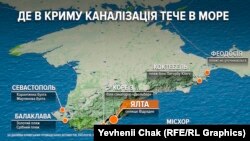 Одним з епіцентрів каналізаційного забруднення Чорного моря є Ялта. Це пов'язано з тим, що навантаження на її інфраструктуру кожні півроку збільшується в кілька разів у зв'язку з напливом курортників.