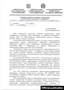 В адміністрації Сімферополя на запит Крим.Реалії повідомили, що до відомства надійшла «велика кількість звернень» з приводу подальшої долі пам'ятника Леніну. Виходячи з цього, чиновники ухвалили низку рішень щодо проєкту реконструкції.