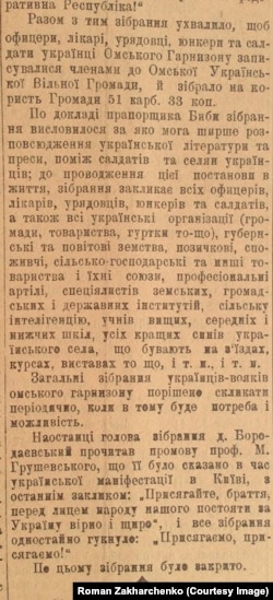 – Так, видавався друкований орган. Він спочатку мав отримати назву «Українець на Сибіру», а згодом, коли набралися кошти, цей часопис отримав назву «Український голос». Його перший номер вийшов у грудні 1917 року. Загалом вийшло десь 5-7 номерів. Надзвичайно цікавий почин, на превеликий жаль він не зміг довго протривати.