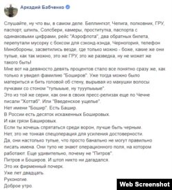 Російському журналісту Аркадію Бабченку про зв’язок «Боширова»-Чепіги з ГРУ було зрозуміло одразу, щойно він дізнався про його прізвище.
